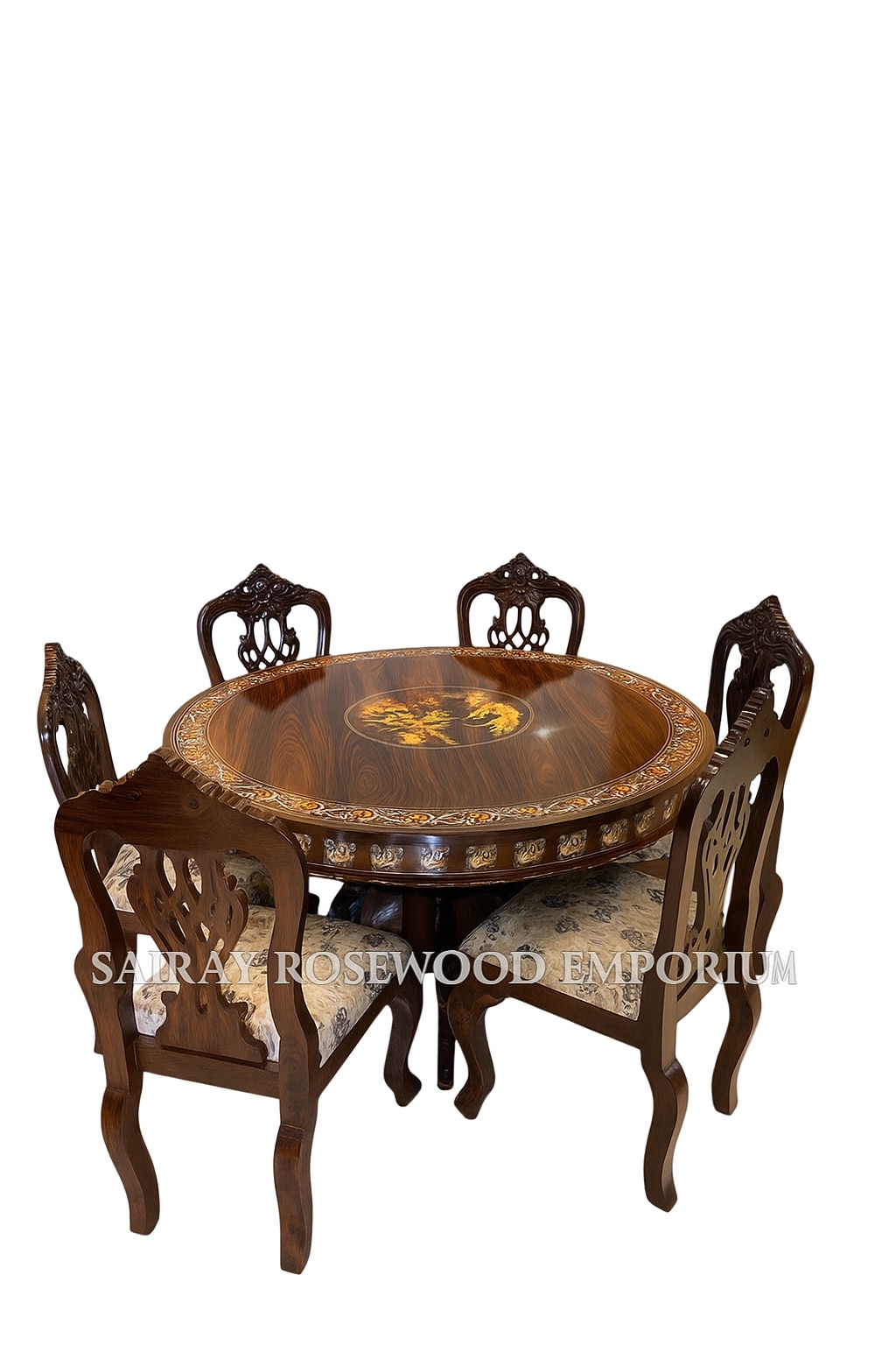 Crafted from premium quality rosewood, this dining table is a perfect blend of elegance, durability, and traditional craftsmanship. The rich, natural grain of rosewood brings warmth and luxury to your dining space, while the sturdy design ensures long-lasting strength and functionality. Its polished finish enhances the beauty of the intricate woodwork, making it a centerpiece for family gatherings, festive occasions, and everyday dining. Designed to complement both classic and contemporary interiors, this table offers not just a place to dine, but an experience of style and sophistication. Ideal for homes, villas, and luxury interiors, the Rosewood Dining Table symbolizes timeless beauty and refined living.