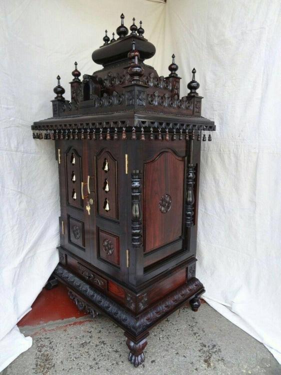 Rosewood Pooja Mandir size : Width 28", Depth 20" Height 46"