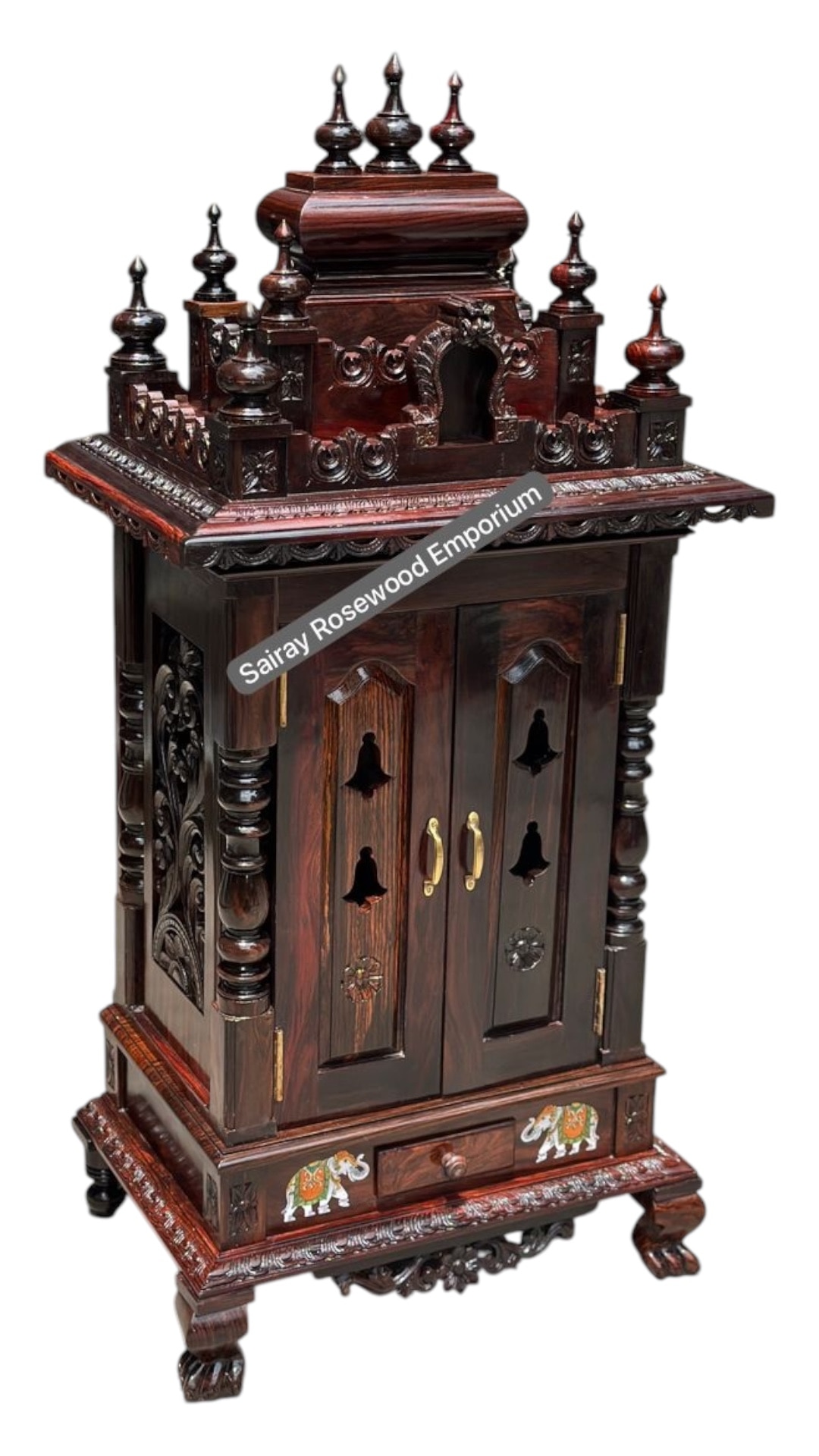 Rosewood Puja Mandir with South-Indian Style Dome & Painted Drawer